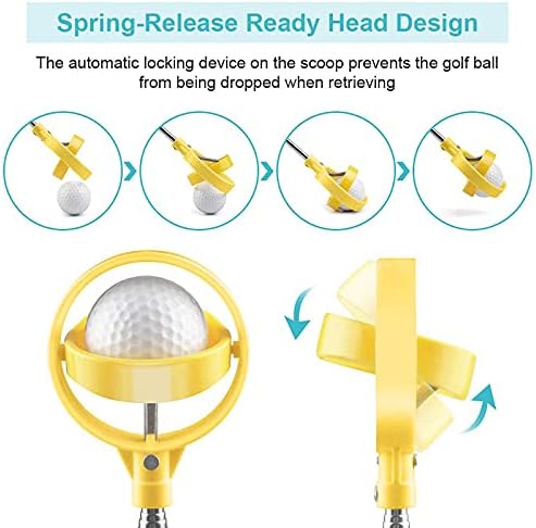 【Automatic Locking Scoop Cup Desig】The automatic locking device on the scoop prevents the golf ball from being dropped When Retrieving.The handle of our golf ball retriever is also designed to conform to the ergonomics, which is easy to grasp and feels very comfortable.
