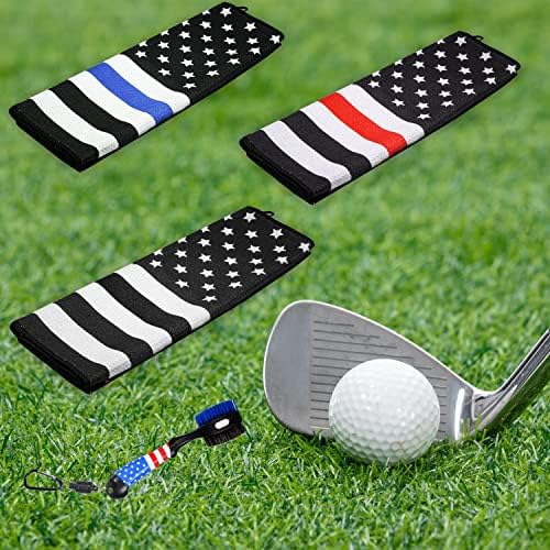 1. GOLF CLUB CLEANING KIT- It’s an economic pack of three 3 Microfiber USA Flag Golf Towels (23.6″x 15.7″/60cm x 40cm) in 3 colors with Clips and 1 Golf Club Brush(length 11.8″ / 30cm) with retractable spike