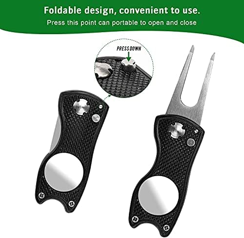 FOLDABLE DIVOT TOOL & MARKER: The divot tool is made of premium stainless steel and aluminum material, durable and solid, lightweight and portable. Ball marker helps you to mark your ball position.