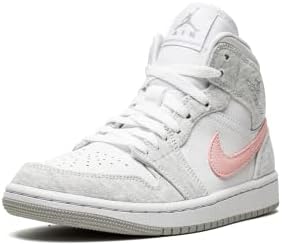 The Women’s Air Jordan 1 Mid SE “Heather Grey/Pink” is a casual colorway of the women’s version of Michael Jordan’s first signature shoe